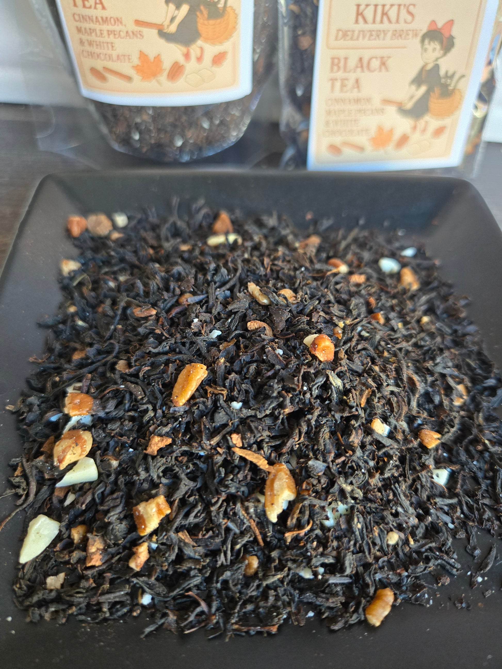 A whimsical blend inspired by Studio Ghibli’s beloved Kiki’s Delivery Service. This enchanting black tea is infused with warm notes of cinnamon, maple, and roasted pecans, kissed with a hint of white chocolate for a creamy, comforting finish. Each cup feels like a cozy flight through autumn skies — sweet, nutty, and full of magic.