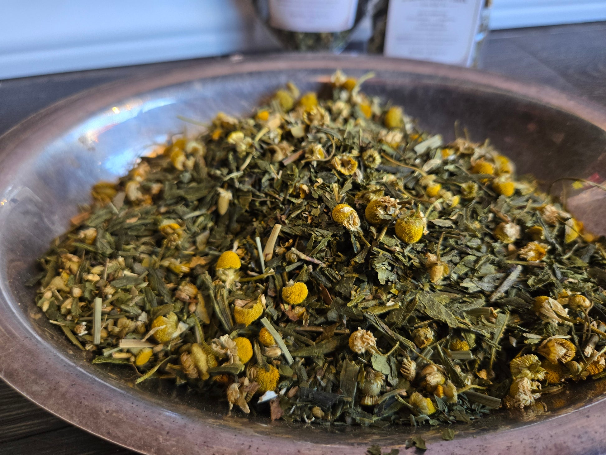 Gentle and calming, chamomile helps relax the body and ease headache discomfort, balancing the more invigorating herbs in the blend.