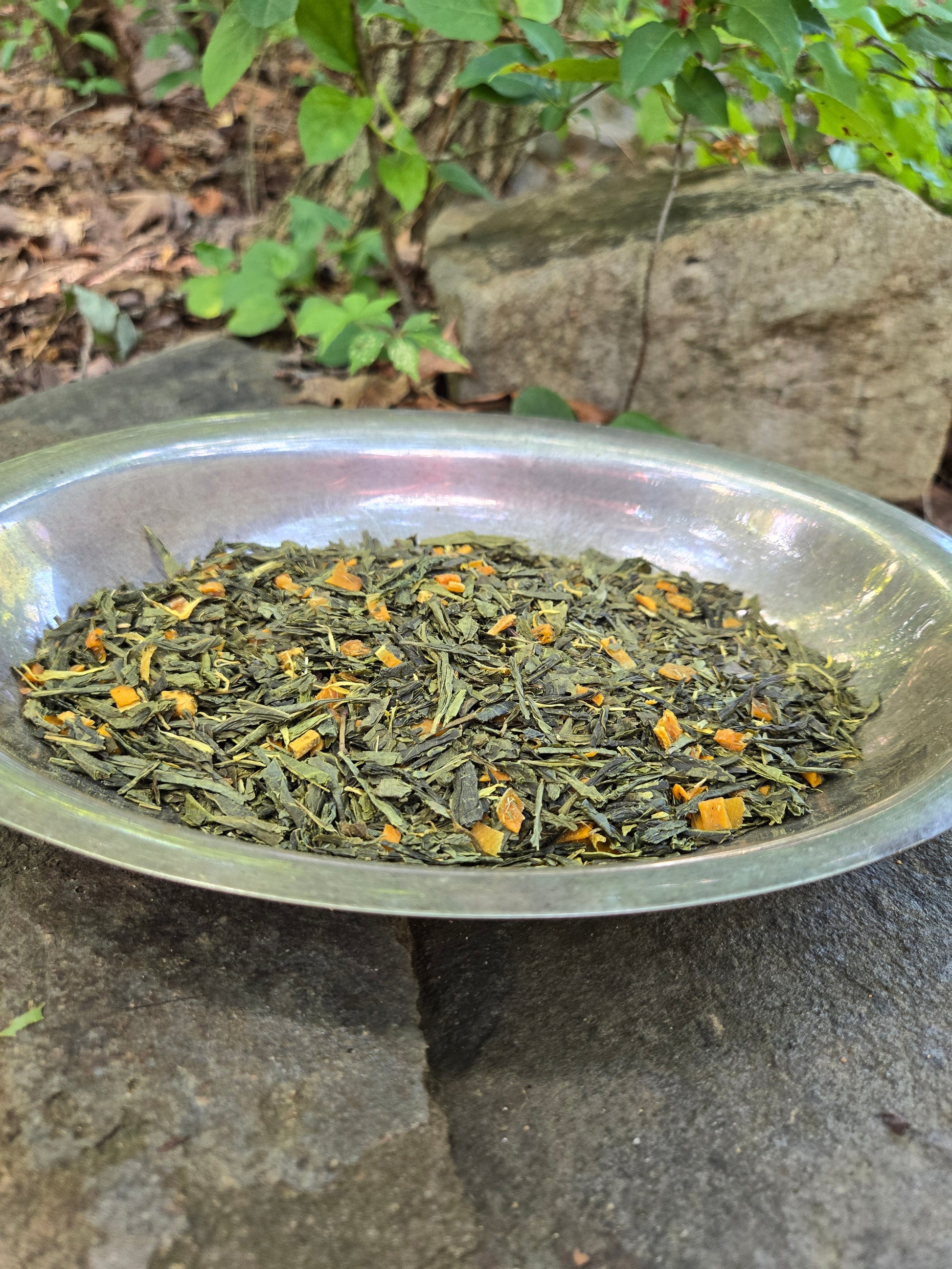 Lush green tea lays the foundation, kissed with sun-ripened mango, golden calendula blossoms, and a touch of citrusy lemongrass. The result is a smooth, floral-fruity cup with the warmth of a rising sun and the calm of a mountain morning.